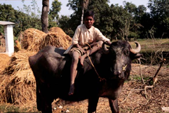 This Rajput landowner is harvesting his crops. He is a member of the caste Kshatriyas, which is right below the Brahmans. He is important to the community because he is the main source of food. He also is a protector. | Here is a Rajput and his family on their land. He is smoking a hooka, or water pipe. He is a member of the caste Kshatriyas, which is right below the Brahmans. He is important to the community because he is a farmer and is a main source of food. |