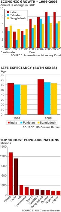 By contrast, Pakistan's economy which was based on agriculture and controlled by feudal elites, was left with 17.5% of the British colonial government's financial reserves after partition. Nevertheless, it has seen sustained growth since the early 1950s despite internal strife, conflict with India, US sanctions, global recession and, more recently, the 2005 earthquake. The economy really took off in 2000 after reforms that saw public sector enterprises privatised, relaxation of regulations on external trade and reform of the banking sector. Thanks to economic growth and foreign investment, all three states have seen expansion and improvement of health and education services. Life expectancy has increased, infant and maternal death rates have dropped, and literacy rates risen. But poverty is still widespread in all three nations, which feature in the top 10 most populous in the world. Almost half the population in Bangladesh lives on less than $1 a day and Pakistan's social indicators still lag behind countries with comparable per capita incomes. A substantial number of people living in India's villages remain illiterate and impoverished, raising concerns about the inclusivity of the economic boom. Powerful regional and caste-based parties have empowered many poor people whose progress was hampered by the ancient Hindu caste system, but that system still impedes widespread social progress.