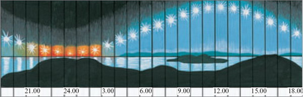 Course of the sun at North Pole on June, 21st (360°)