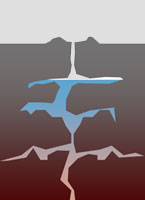 | Hypothetischer Querschnitt durch einen Geysir und sein
