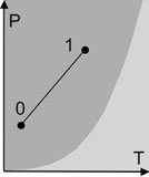 P: Druck, T: Temperatur. Die Diagramme zeigen die Situation
