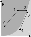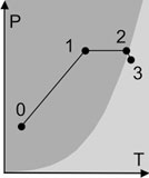 Schlot sowohl der Druck als auch die Temperatur. Punkte 3 bis 4. |