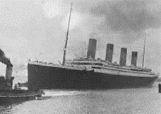 | The Titanic was believed to be unsinkable until it struck an iceberg on April 14, 1912, about 153 km south of Newfoundland near the Grand Banks ( 45° 00' N / 53° 00' W), and sank early next morning. The loss of the Titanic during its maiden voyage is one of the worst disasters in maritime history. Of more than 2,200 passengers and crew on board, over 1,500 died. | ![]() |